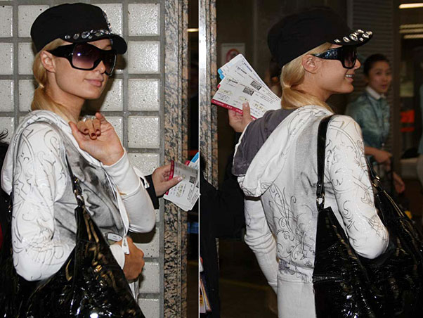 Paris Hilton deixou o Brasil em direção a Los Angeles, na manhã deste sábado, 12/06, a loira foi fotografada no aeroporto de Congonhas, em São Paulo.